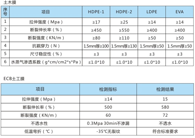 LDPE、EVA土工模:延伸率大,低溫性能好,柔軟易施工。